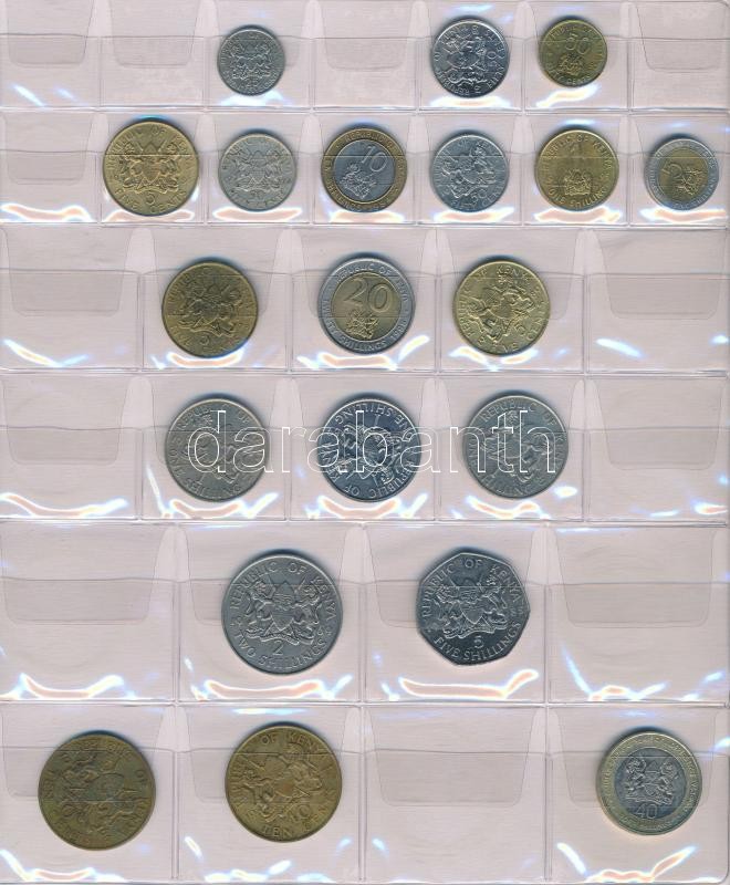 Kenya 1966-2003. 20pcs of... https://www.darabanth.com/hu/328-Gyorsarveres/328.0/Numizmatika/Kulfoldi-fem-es-ezustpenzek~2500012/Kenya-1966-2003-20db-os-erme-tetel-T1-2--Kenya-1966-2003-20pcs-of-coins-CAU-VF~II1829244