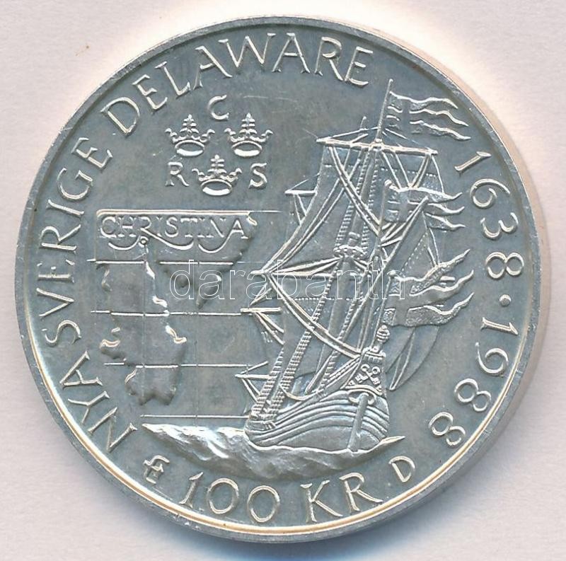 Svédország 1988. 100K Ag "350 éves a Delaware-i svéd kolónia" T:BU