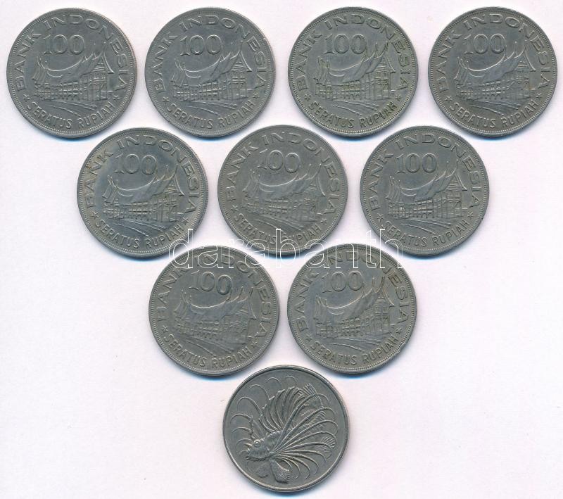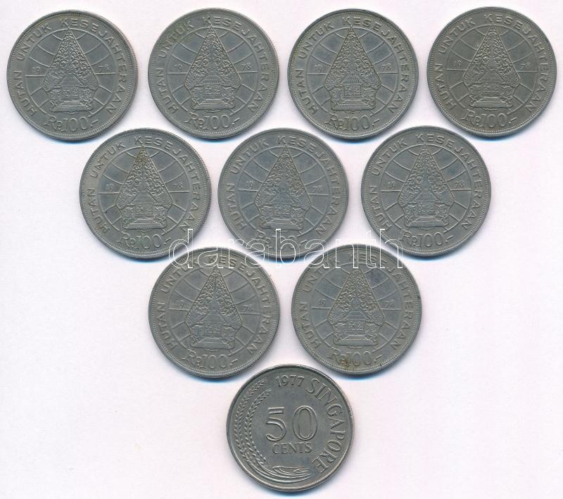 Vegyes: Indonézia 1978. 100R (9x) + Szingapúr 1977. 50c T:2,2-