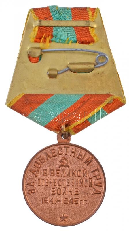 Szovjetunió 1945. "Bátor Munkáért az 1941-1945-ös Nagy Honvédő Háborúban" Cu kitüntetés mellszalaggal T:2