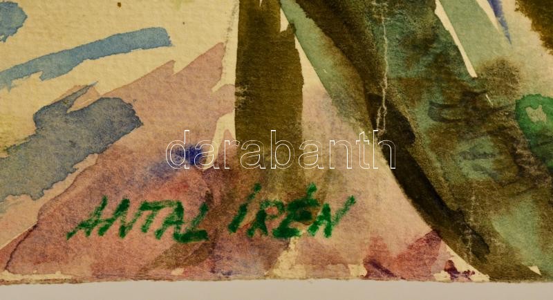 Leírás: Antal Irén (1903-1999): Szeles séta, akvarell, papír, jelzett, 33×50 cm