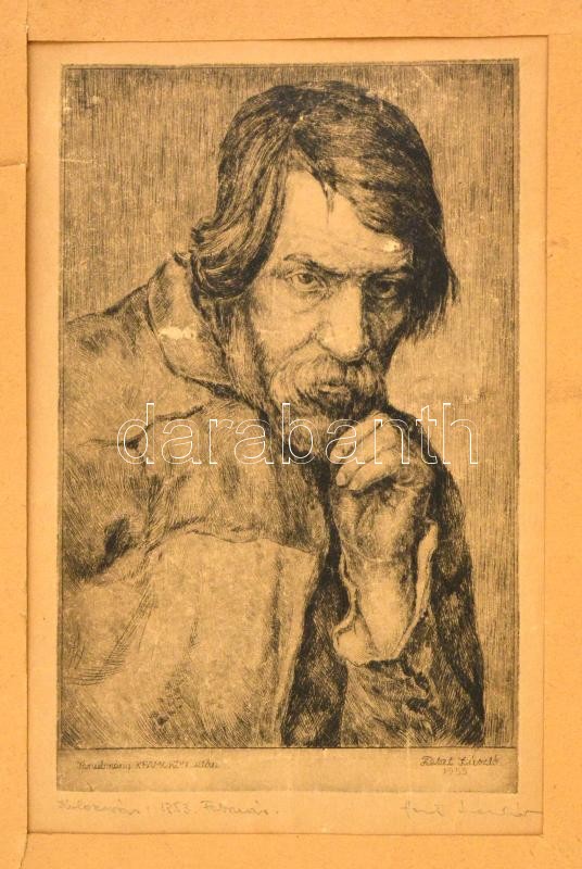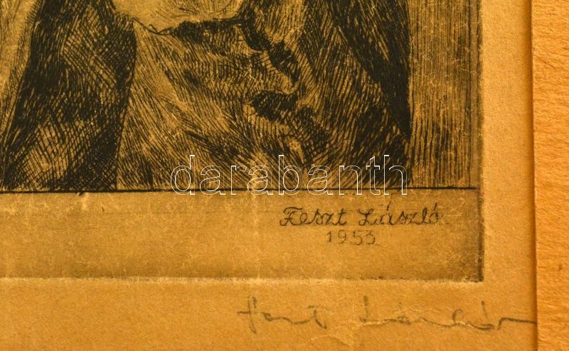 Leírás: Feszt László (1930-): Tanulmány Kramszkoj után. Rézkarc, papír, jelzett, sérült, 23×15 cm
