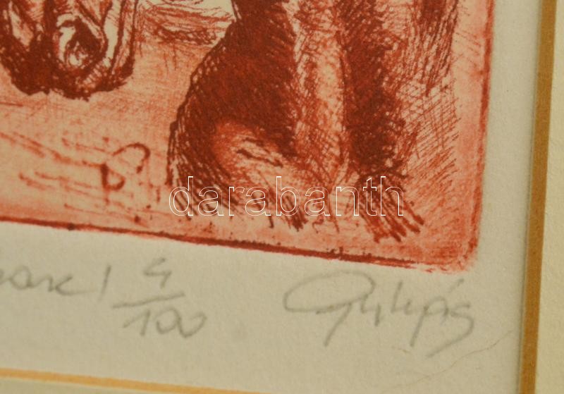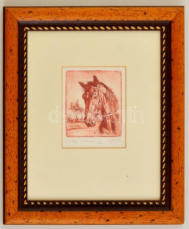 Leírás: Gulyás László (1960-): Matyi. Rézkarc (4/100), papír, üvegezett keretben, jelzett, 9×7,5 cm