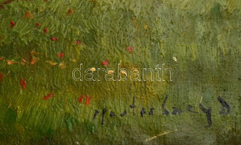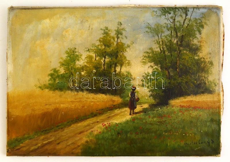 Leírás: Mesterházy Dénes (?-?): Hazafelé. Olaj, vászon, festék lepattanással 34×50 cm