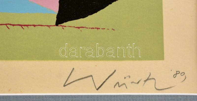 Leírás: Würtz Ádám (1927-1994): Malmozók. Színes szitanyomat, papír, jelzett, paszpartuban, 43x31 cm.