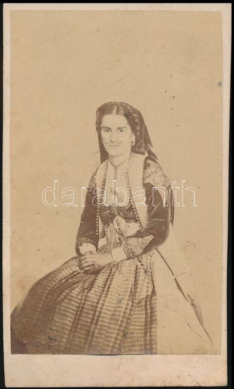 cca 1865 Milena Vukotić (1847-1923) montenegrói hercegné majd királyné, keményhátú fotó, 10×6 cm / Milena Vukotić the wife of King Nicholas I of Montenegro, vintage photo