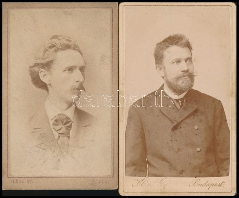 Leírás: cca 1869 és 1885 Klösz György pesti fényirdai műtermében készült 2 db vizitkártya méretű fénykép, 10,5x6,5 cm