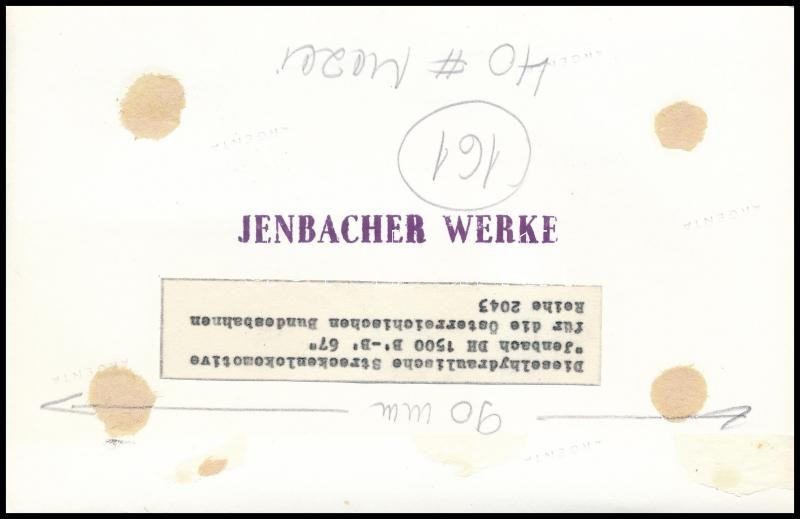 Leírás: cca 1964-1965 ÖBB 2043.01 típusú dízelmozdony, hátoldalon feliratozott fotó, retusált, 11×17 cm / ÖBB 2043.01 locomotive, Jenbacher Werke