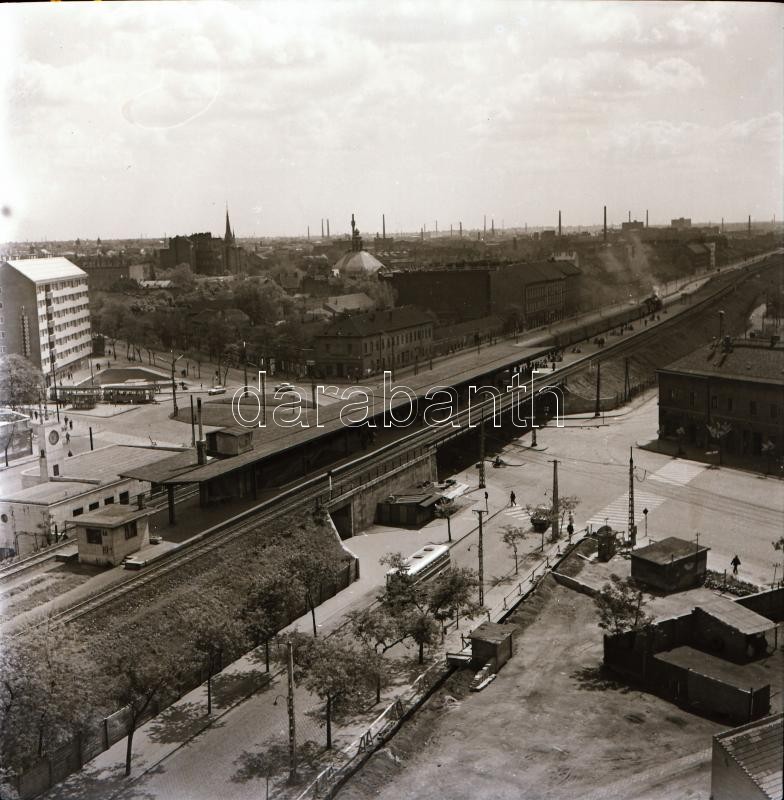 Leírás: cca 1968 Budapest, X. kerület, kőbányai városképek, épületfotók, utca képek, stb., 21 db vintage negatív (6x6 cm) + 1 db vintage fotó, 18x24 cm