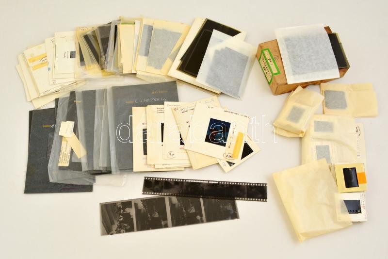 Leírás: cca 1970-1980 Vegyes fotónegatív tétel: életképek, kirándulások, stb., különböző méretben; közte Reza Deghati (1952- ) iráni-francia fotográfus diapozitívjaival a '80-as évekből: Dél-Afrika, iráni-iraki háború, Afganisztán, stb., feliratozva, pecséttel jelzettek