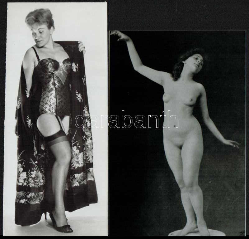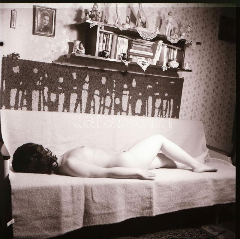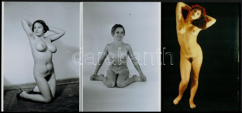 cca 1979 Szolidan erotikus felvételek véletlenszerű találkozása egy tételben, 8 db vintage negatív (6x6 cm), + 7 db mai nagyítás (18x25 cm és 10x15 cm között), a negatívok és a pozitív fényképek között nincs összefüggés