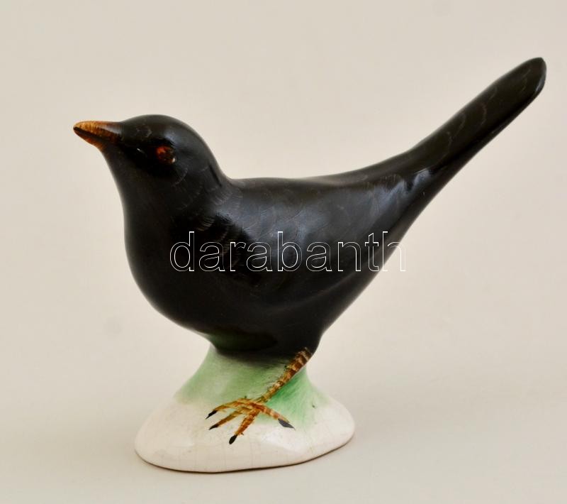Leírás: Bodrogkeresztúri fekete rigó, kézzel festett, jelzés nélkül, apró kopásokkal, m: 9,5 cm