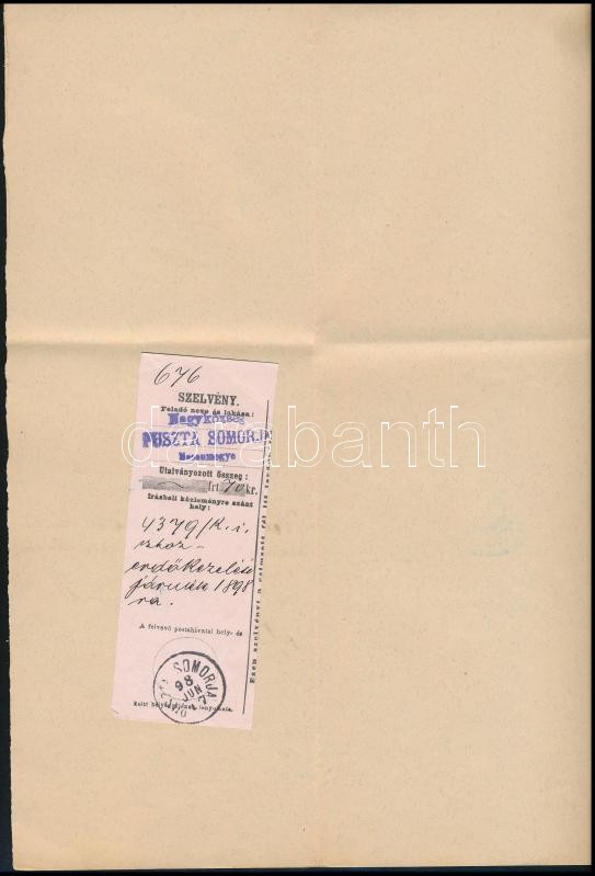 1898 Puszta Somorja, erdőkezelési járulék, utalvány szelvény okmányon https://www.darabanth.com/hu/329-Gyorsarveres/329.0/Festmeny-mutargy-papirregiseg-egyeb/Okmanyok~500016/1898-Puszta-Somorja-erdokezelesi-jarulek-utalvany-szelveny-okmanyon~II1833195