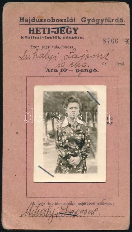 1943 Hajdúszoboszló Gyógyfürdő fényképes jegy https://www.darabanth.com/hu/329-Gyorsarveres/329.0/Festmeny-mutargy-papirregiseg-egyeb/Okmanyok~500016/1943-Hajduszoboszlo-Gyogyfurdo-fenykepes-jegy~II1836754