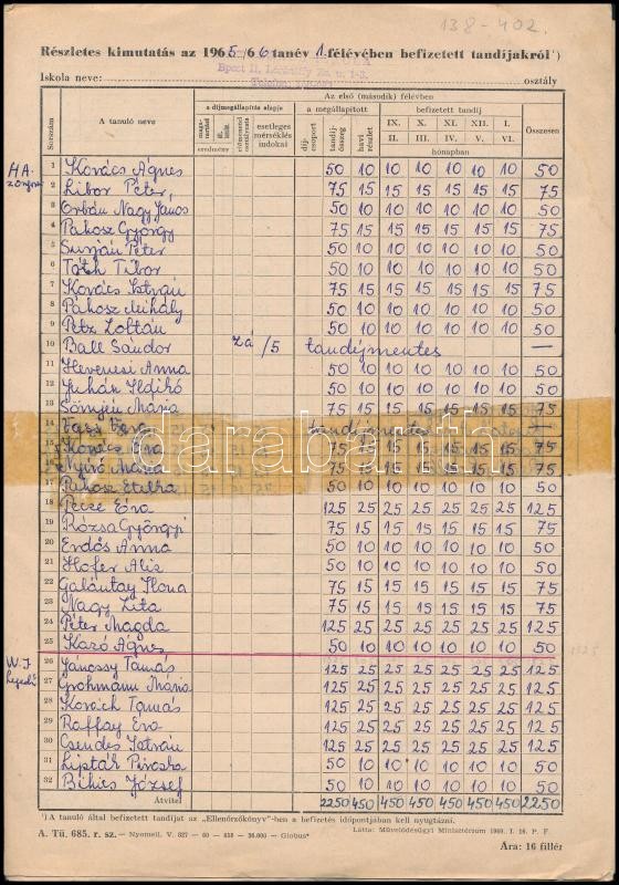 1965 Általános iskolai tandíjkimutatás összesen 4.200 Ft névértékű il... https://www.darabanth.com/hu/329-Gyorsarveres/329.0/Festmeny-mutargy-papirregiseg-egyeb/Okmanyok~500016/1965-Altalanos-iskolai-tandijkimutatas-osszesen-4200-Ft-neverteku-illetekbelyeggel~II1779150