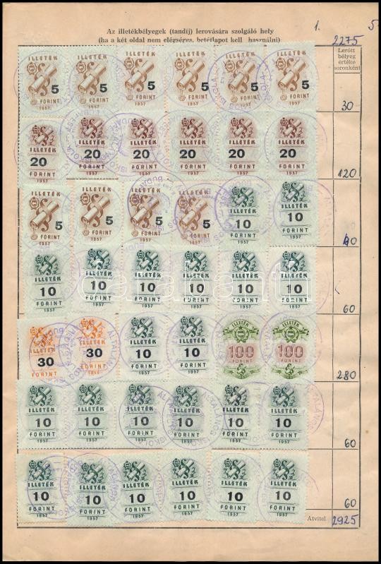 Leírás: 1965 Általános iskolai tandíjkimutatás összesen 4.200 Ft névértékű illetékbélyeggel