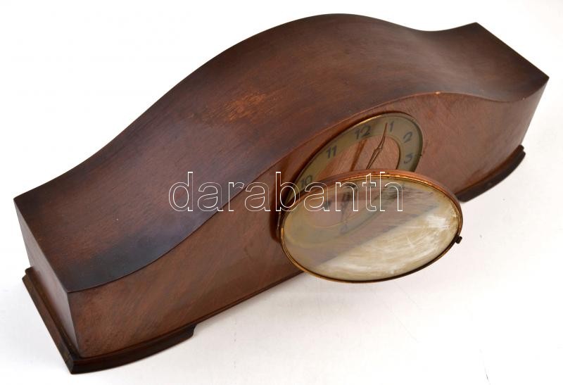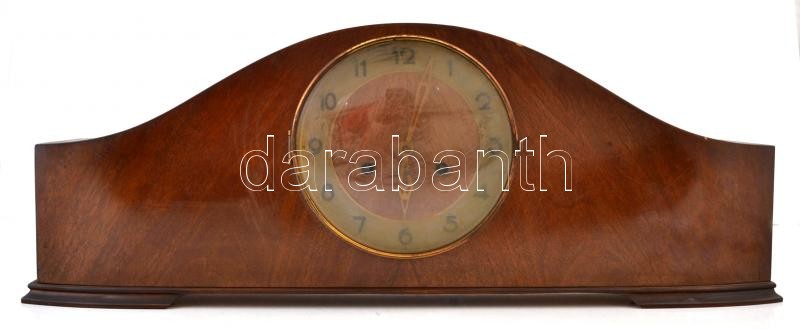 Leírás: Fa kandalló óra, felesütős, üt, de nem jár, külsején apró hibával, 57×13×21,5 cm