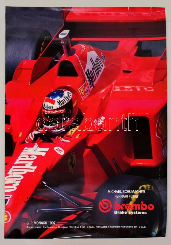 1997 Michael Schumacher poszter, Formula-1 Ferrari, 98,5x68,5 cm https://www.darabanth.com/hu/329-Gyorsarveres/329.0/Festmeny-mutargy-papirregiseg-egyeb/Plakat~500031/1997-Michael-Schumacher-poszter-Formula-1-Ferrari-98-5x68-5-cm~II1798259