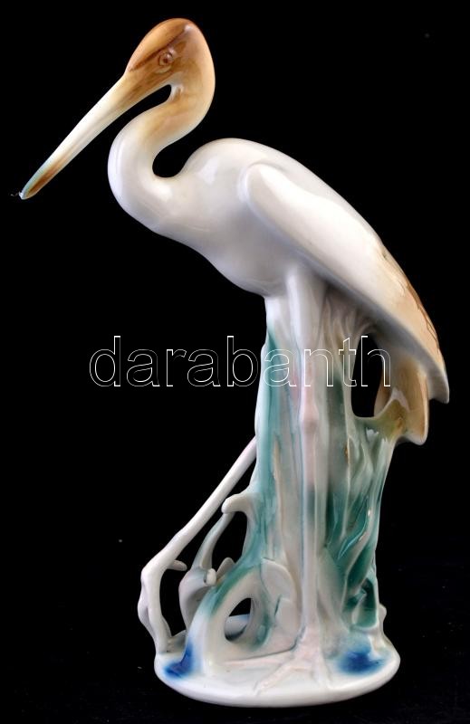 Leírás: Cervit Cluj Napoca kócsag, kézzel festett, jelzett, alján hajszálrepdéssel, m: 38,5 cm