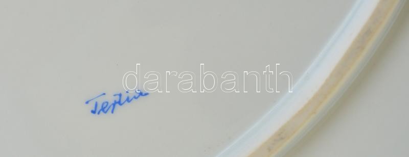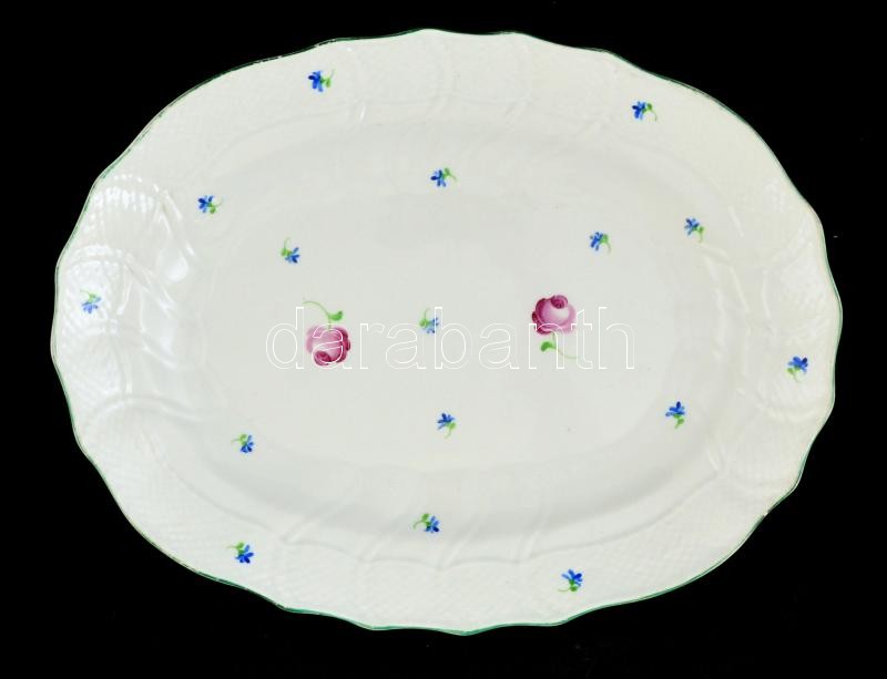 Leírás: Herendi virág mintás nagy tál, kézzel festett, jelzett, kopott, 40×31 cm