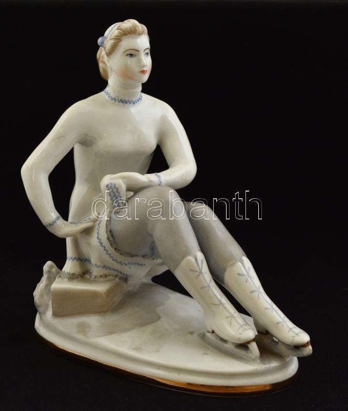 Leírás: Lomonosov korcsolyázó, kézzel festett, jelzett, apró kopásokkal, m: 17 cm