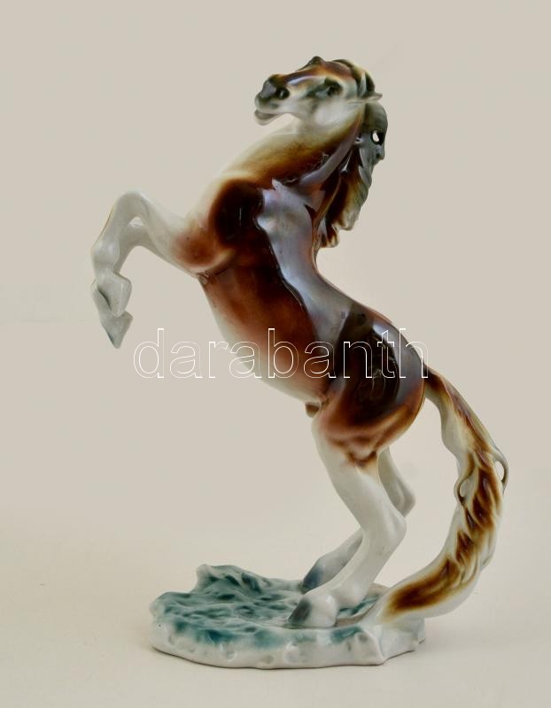 Leírás: Porfin Cluj-Napoca román porcelán ágaskodó ló, kézzel festett, jelzett, apró kopásokkal, m: 37 cm