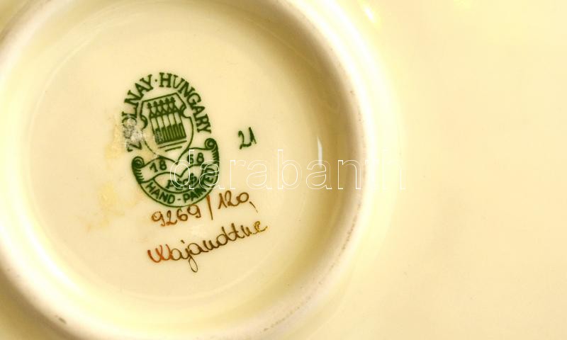 Leírás: Zsolnay tál, kézzel festett, jelzett, apró kopásokkal, d: 30,5 cm