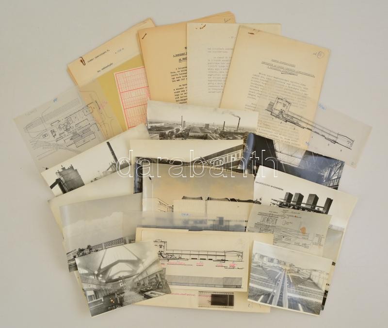 Leírás: cca 1960 Dokumentumok a magyar acél- és alumíniumgyártás történetéből: beszámolók, összefoglalók, 3 gépirat, mellékelt fényképekkel