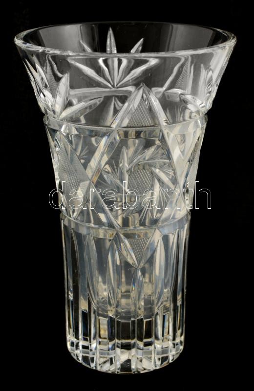 Leírás: Ólomkristály váza, metszett, kis karcolásnyomokkal, m: 18,5 cm