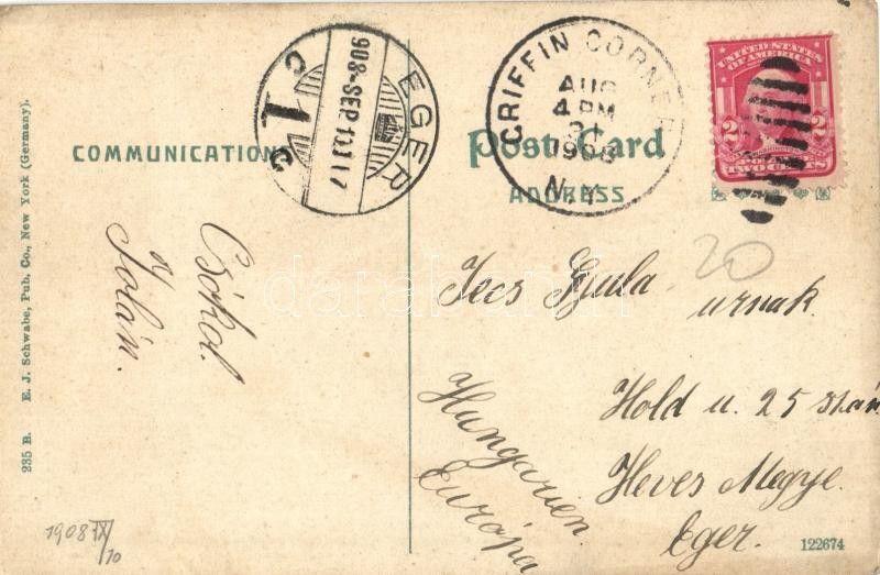 Leírás: 1908 Catskill Mountains, New York; Otis Incline Railway, narrow gauge cable funicular railroad. E. J. Schwabe Pub. Co. (EK)