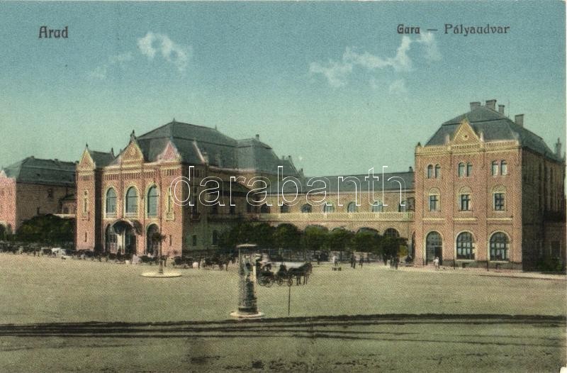 Arad, Vasútállomás, pályaudvar, hirdetőoszlop, hintók / Gara / Bahnhof... https://www.darabanth.com/hu/329-Gyorsarveres/329.0/Kepeslapok/Erdely~2000006/Arad-Vasutallomas-palyaudvar-hirdetooszlop-hintok-Gara-Bahnhof-railway-station-adve~II1838853