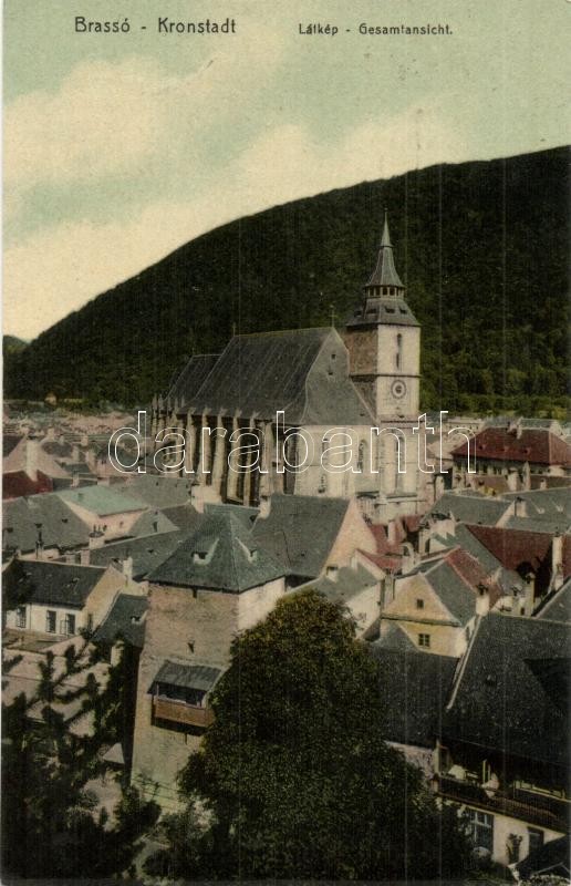 Leírás: Brassó, Kronstadt, Brasov; látkép templommal, kiadja Benkő Ignác / panorma view with church