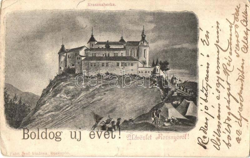 Leírás: 1902 Krasznahorkaváralja, Krásnohorské Podhradie (Rozsnyó); vár. kiadja Falvi Jenő / castle / Schloss s: Bálint B. (szakadás / tear)
