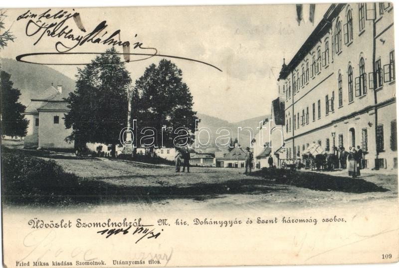 1906 Szomolnok, Schmölnitz, Smolnik; M. kir. Dohánygyár és Szenthároms... https://www.darabanth.com/hu/329-Gyorsarveres/329.0/Kepeslapok/Felvidek~2000007/1906-Szomolnok-Schmolnitz-Smolnik-M-kir-Dohanygyar-es-Szentharomsag-szobor-Fried-Miksa-k~II1836882