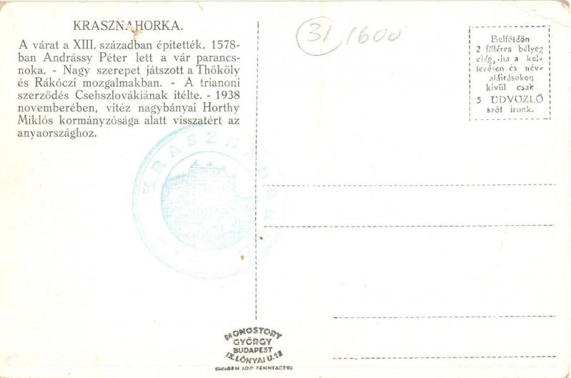 Krasznahorkaváralja, Krásnohorské Podhradie; Vár / castle, 'Krasz... https://www.darabanth.com/hu/329-Gyorsarveres/329.0/Kepeslapok/Felvidek~2000007/Krasznahorkavaralja-Krasnohorske-Podhradie-Var-castle-Krasznahorka-So-Stpl-EK~II1837782
