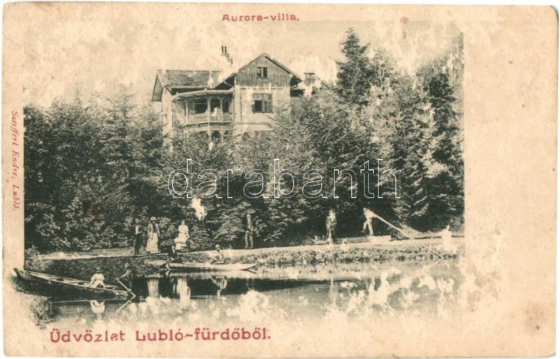 Lubló-fürdő, Kúpele Lubovna; Aurora villa / villa (felszíni sérülés / ... https://www.darabanth.com/hu/329-Gyorsarveres/329.0/Kepeslapok/Felvidek~2000007/Lublo-furdo-Kupele-Lubovna-Aurora-villa-villa-felszini-serules-surface-damage~II1832520