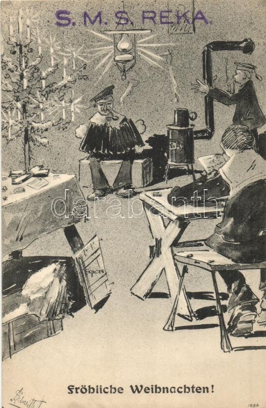 "Fröhliche Weihnachten!" / K.u.K. Kriegsmarine mariner humor... https://www.darabanth.com/hu/329-Gyorsarveres/329.0/Kepeslapok/Hadihajo~2000023/Frohliche-Weihnachten-KuK-Kriegsmarine-mariner-humorous-art-postcardC-Fano-Pola-1909-10-~II1836190