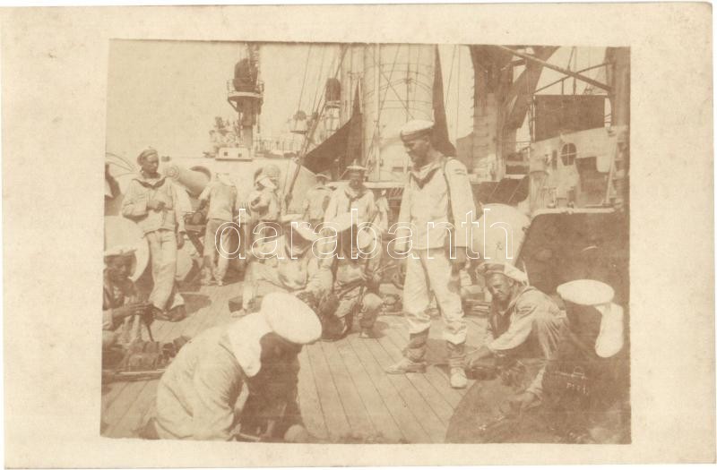 Osztrák-Magyar Haditengerészet matrózai egy csatahajó fedélzetén / K.u.K. Kriegsmarine / WWI Austro-Hungarian Navy mariners on a batthleships's board. photo