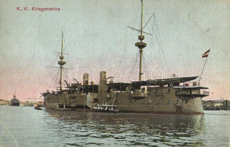 Leírás: SMS Bellona Osztrák-Magyar Haditengerészet uszály laktanyája a matrózoknak (ex SMS Kaiser) / K.u.K. Kriegsmarine Wohnschiff / Austro-Hungarian Barracks ship for mariners (EK)