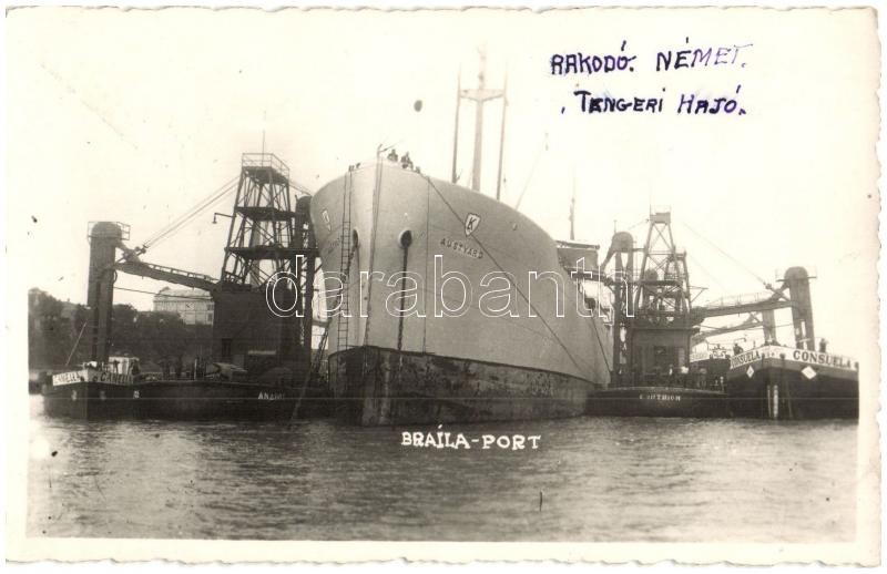 1937 Braila, Kikötő, rakodó német tengeri hajó / port, German ship, ph... https://www.darabanth.com/hu/329-Gyorsarveres/329.0/Kepeslapok/Hajo~2000024/1937-Braila-Kikoto-rakodo-nemet-tengeri-hajo-port-German-ship-photo~II1835293