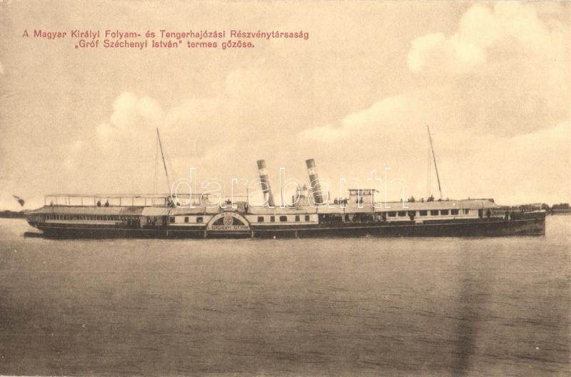 A Magyar Királyi Folyam- és Tengerhajózási Részvénytársaság (MFTR) SS Gróf Széchenyi István termes személyszállító gőzöse, Klösz György és Fia / Hungarian passenger steamship