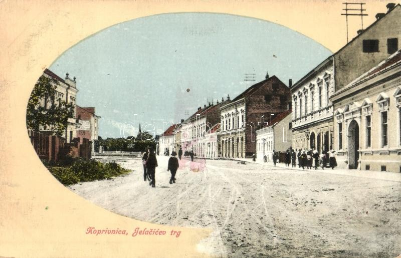 Leírás: Kapronca, Kopreinitz, Koprivnica; Jelacicev trg / Jelasics tér,kiadja Jar. Merhant / square
