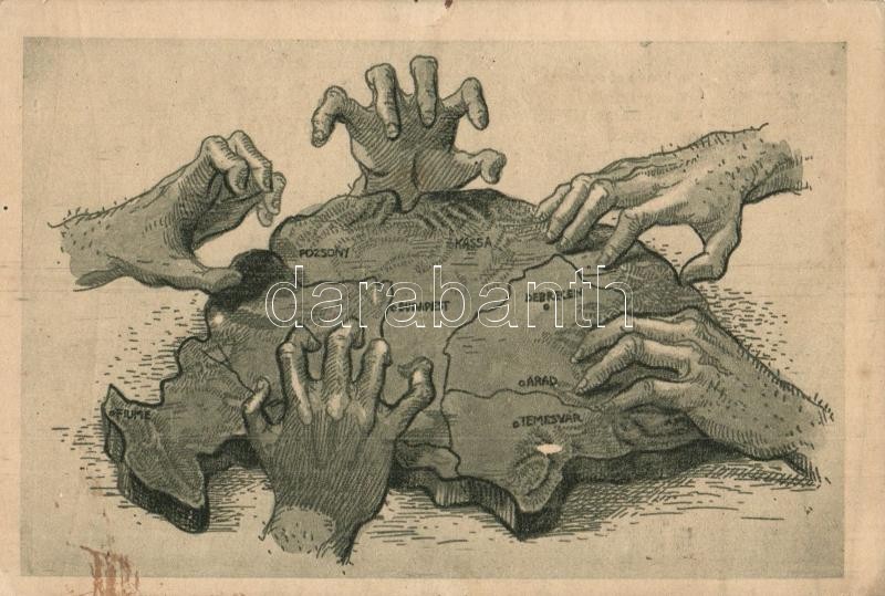 A rablók kezei. Kiadja a Szózat Magyarország Területi Épségének Védelmi Ligájának napilapja / The hands of robbers. Hungarian irredenta s: Helbing Aranka (EK)