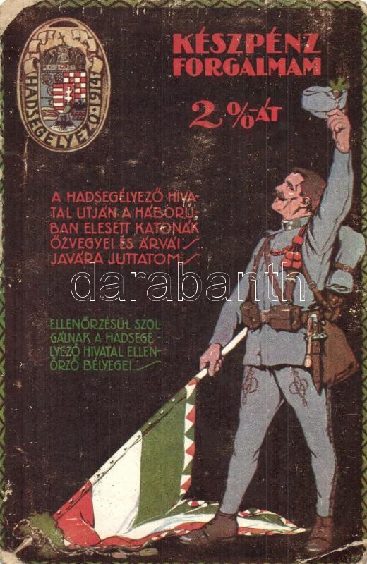 Leírás: 1914 Magyar Hadsegélyező Hivatal propaganda segélylapja / WWI Hungarian military charity propaganda card (kopott sarkak / worn corners)