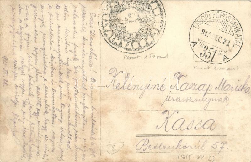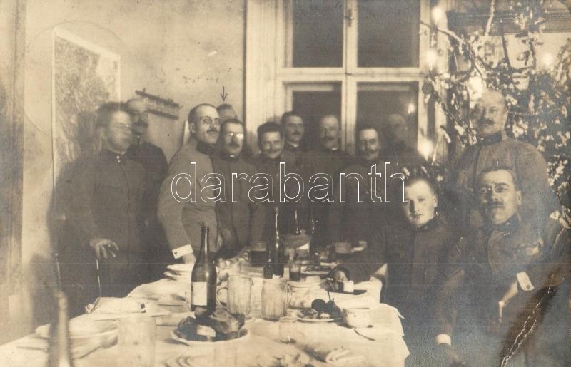 1915 Osztrák-magyar tisztek már december 23-án megünnepelték a karácsonyt / WWI Austro-Hungarian K.u.K. military officers celebrating Christmas already on December 23. photo + tábori pecsétek (EK)