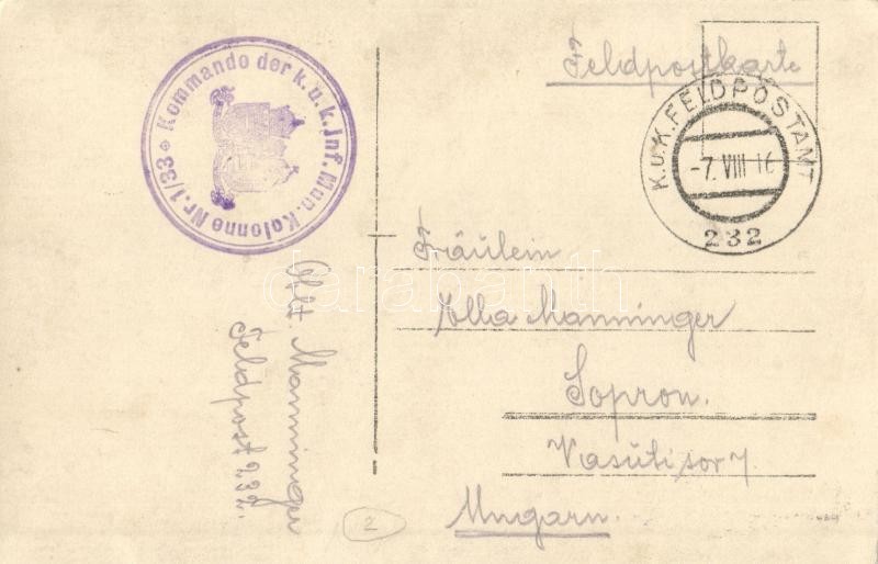 Leírás: 1916 Osztrák-magyar páncélvonat / K.u.K. Panzerzug / WWI Austro-Hungarian panzer train (armored train). photo + Kommando der k.u.k. Inf. Mun. Kolonne Nr. 1/33 (EK)