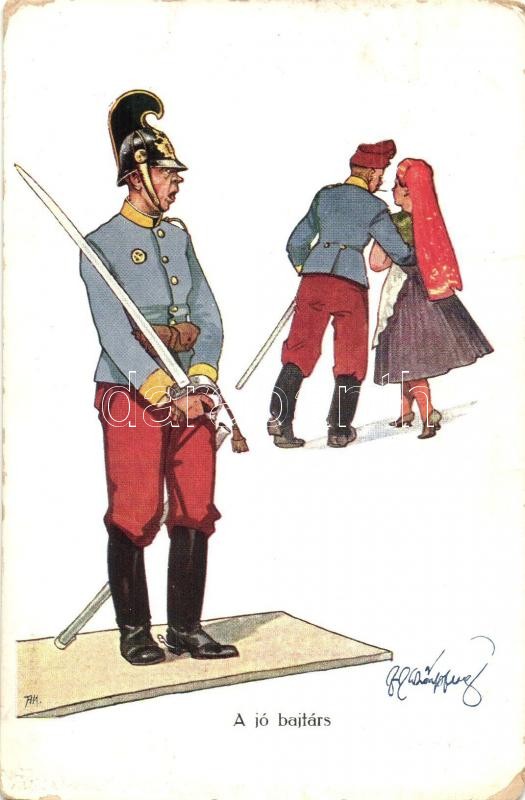 'A jó bajtárs' / K. u. K. military humorous art posctard. B.... https://www.darabanth.com/hu/329-Gyorsarveres/329.0/Kepeslapok/Katonai~2000031/A-jo-bajtars-K-u-K-military-humorous-art-posctard-BKWI-459-1-s-Schonpflug-kopott-s~II1836256