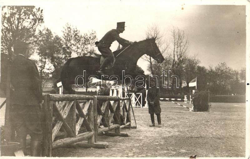 Akadályugratás az Esztergom-Tábor katonai táborban. Schäffer udv. fényképész felvétele / obstacle jumping in the military camp of Esztergom. photo (EK)