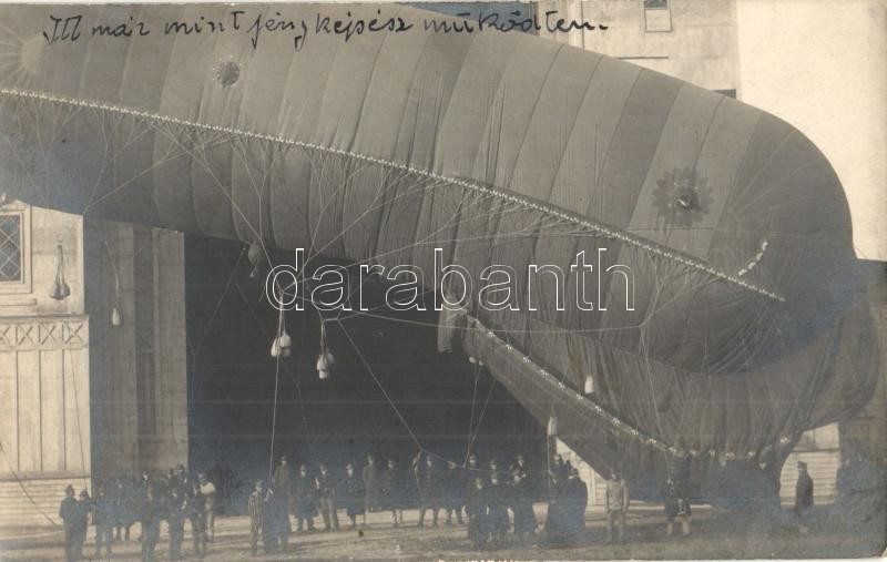 Első világháborús osztrák-magyar katonai léggömb megfigyelői szolgálatra, a levélíró saját felvétele / WWI Austro-Hungarian K.u.K. military airship for observation service, military observation balloon. photo