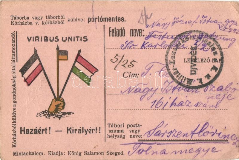 Hazáért! Királyért! Tábori posta propaganda lap / Viribus Unitis WWI A... https://www.darabanth.com/hu/329-Gyorsarveres/329.0/Kepeslapok/Katonai~2000031/Hazaert-Kiralyert-Tabori-posta-propaganda-lap-Viribus-Unitis-WWI-Austro-Hungarian-military-~II1835234